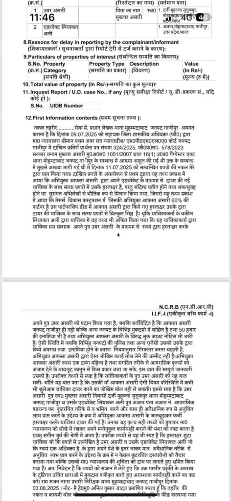 उमर अंसारी पर आरोप है कि उन्होंने अपनी मां अफशां अंसारी, जो एक लाख की इनामी और फरार अभियुक्त हैं, के फर्जी हस्ताक्षर कर अदालत में याचिका दाखिल की। याचिका का मकसद गैंगस्टर एक्ट के तहत जब्त संपत्ति को छुड़ाना था। लेकिन जब दस्तावेजों की जांच हुई, तो हस्ताक्षर असली से मेल नहीं खाए और फर्जीवाड़ा उजागर हो गया।